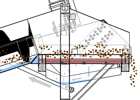 螺旋分級機是選礦的設(shè)備之一,螺旋分級機借助固體顆粒的比重不同,