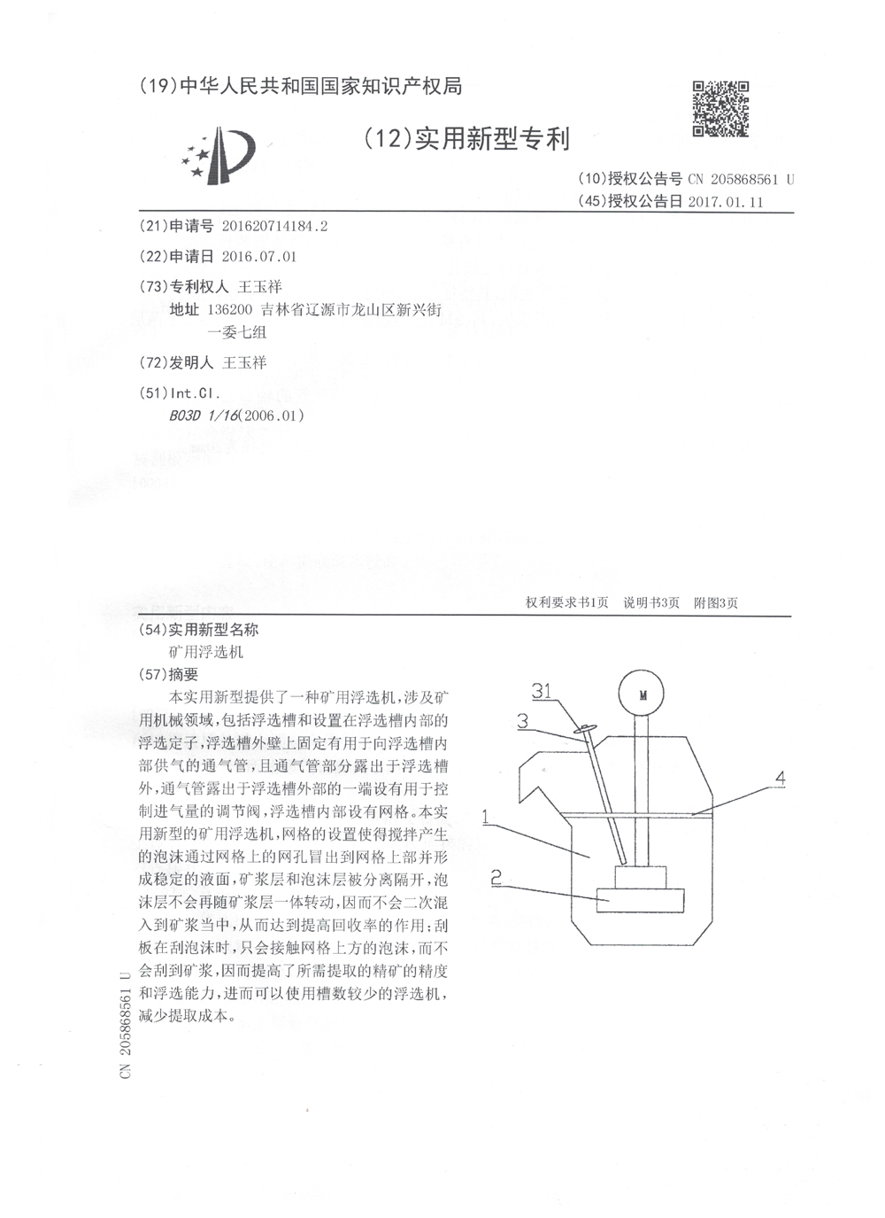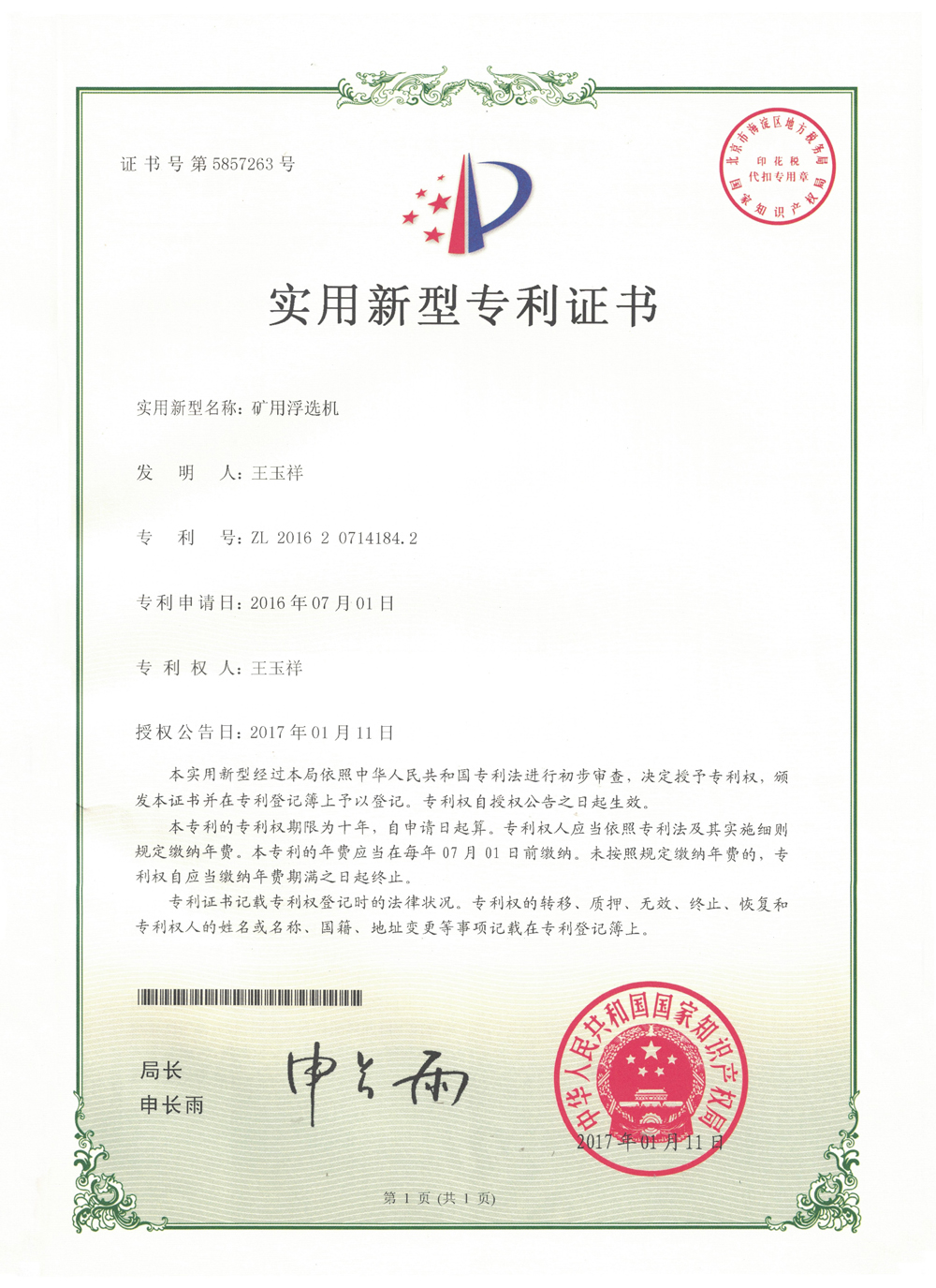 本廠生產(chǎn)的浮選機為專利產(chǎn)品,已在多個選廠運用該專利浮選機多年,在生產(chǎn)過程中大幅度的提高了礦粉的回收率。
